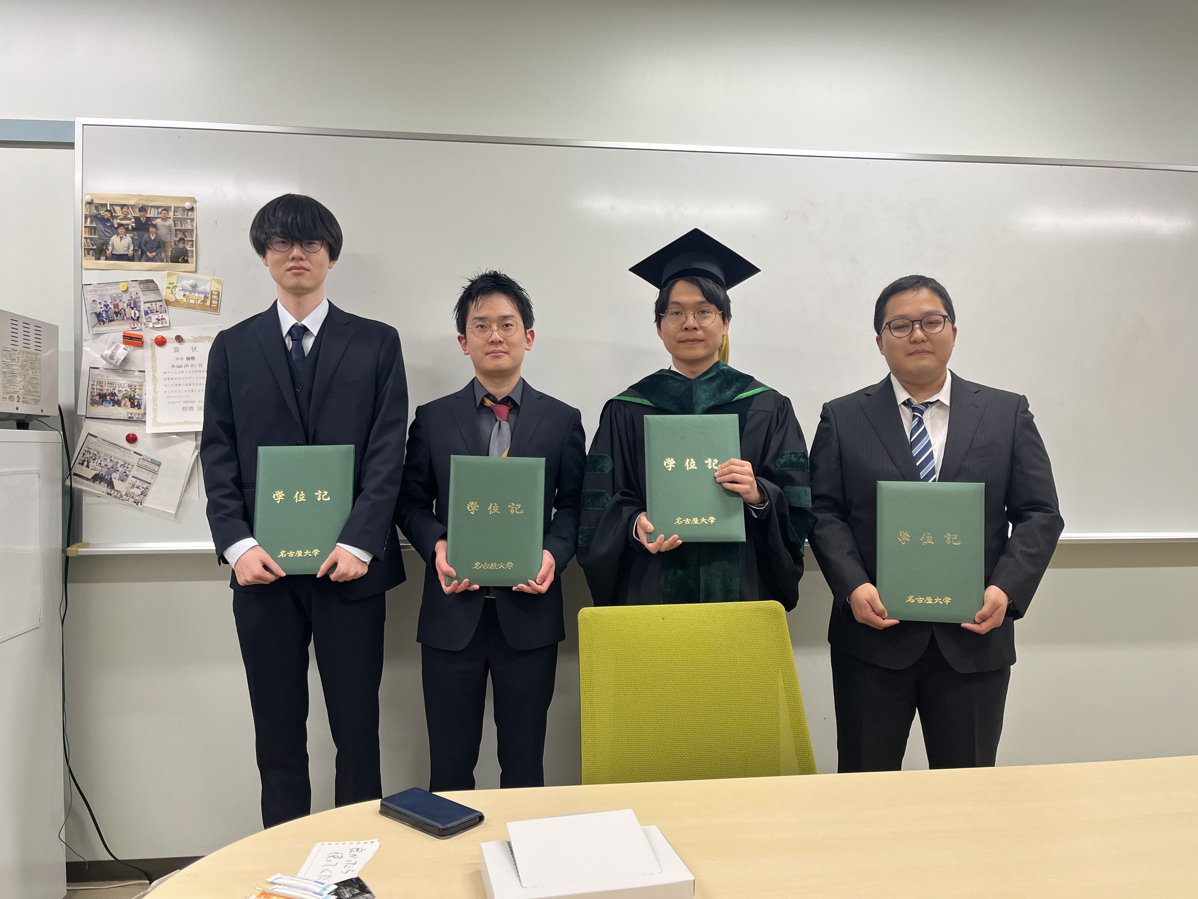 博士3年の別所さん、修士2年の阿部さん、富岡さん、学部4年の伊藤さんがそれぞれ学位を取得して卒業されました。おめでとうございます!